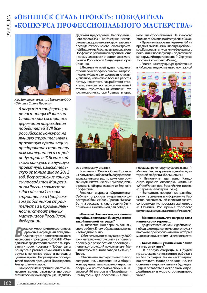 Публикация в журнале "Строительная Орбита". Выпуск №9, 2013 г.